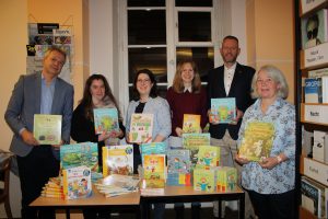 Auf dem Gruppenbild Buchspende sehen Sie v. l. n. r.: